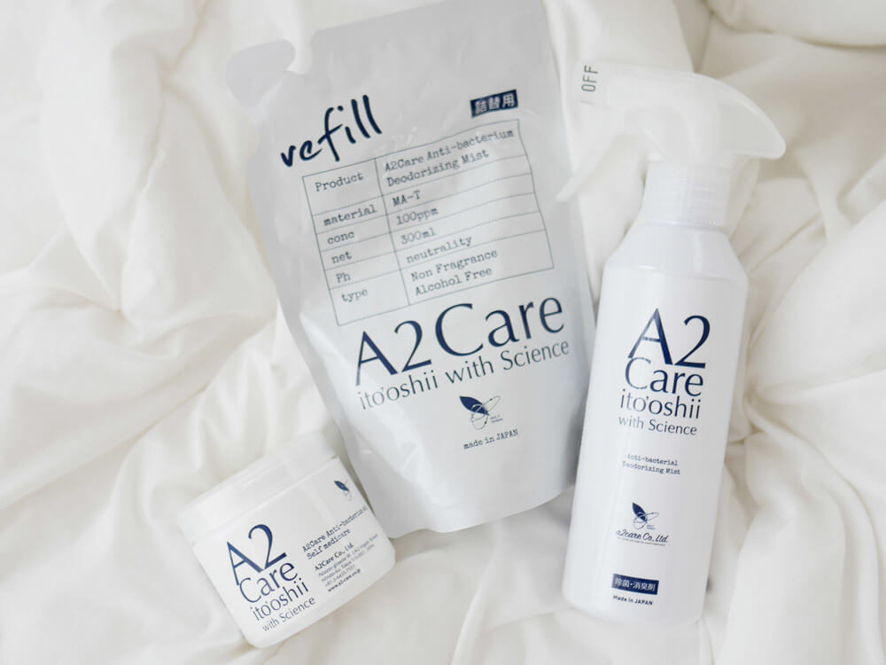 香りでごまかさない、確かな除菌力、消臭力と安全性の「A2Care」。