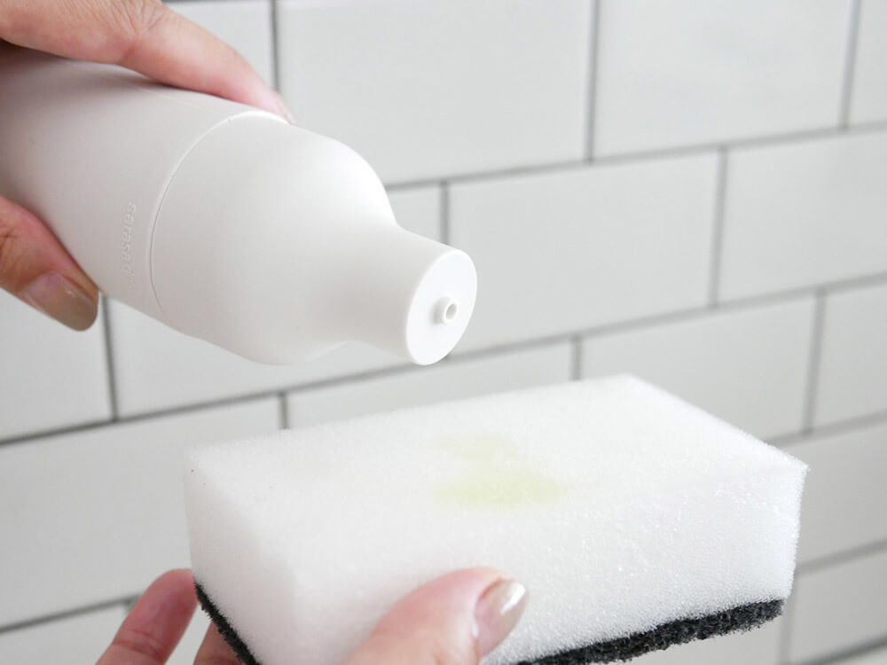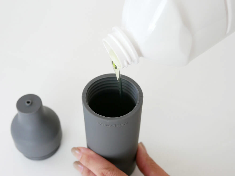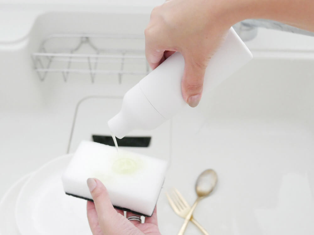 手に馴染みやすい質感とちょうどいい太さが毎日の作業には心地よく、軽い力でプシュっと洗剤を出せますよ。