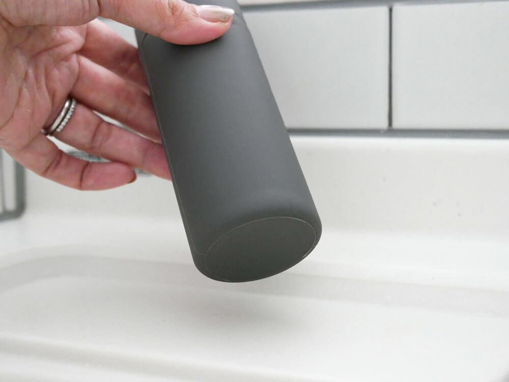 ボトルが濡れた場合でも安定し、シンクや床に落としてしまっても、柔軟性のあるシリコン素材なので傷をつける心配もありません。
