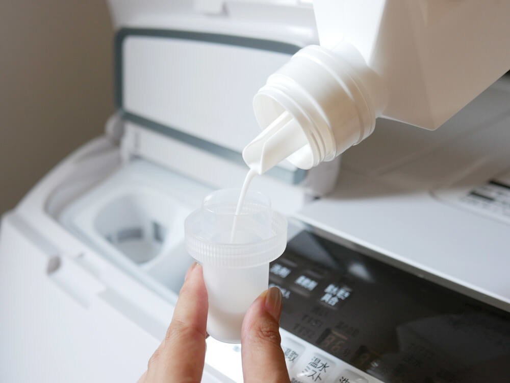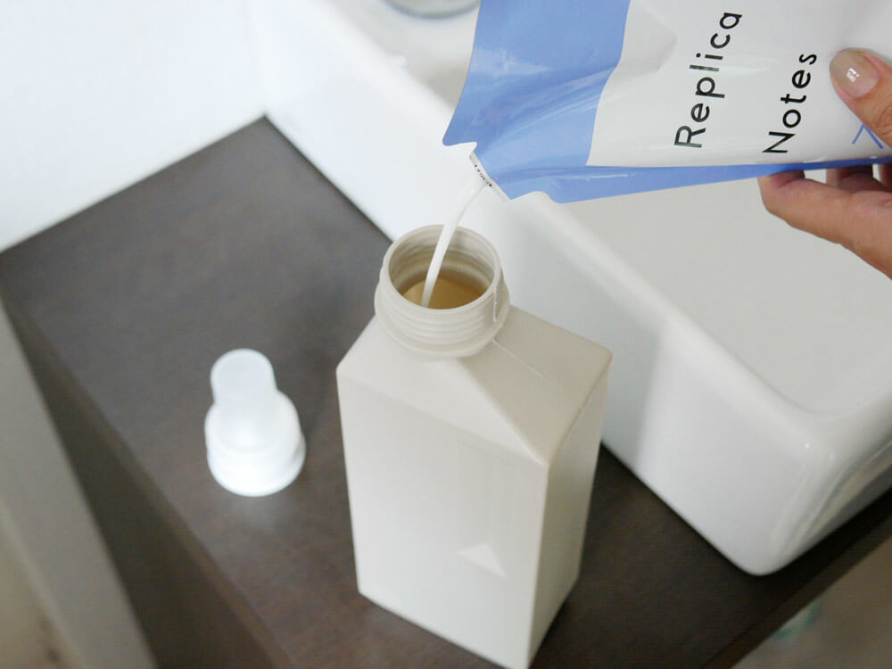 そして洗濯機の洗剤入れに注ぎやすいスリムキャップ。半透明なキャップが高級感をもプラスしてくれています。