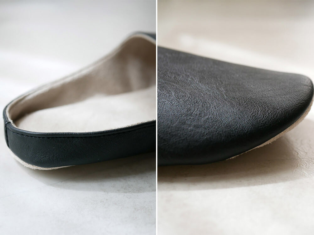 ぱっと見、シンプルでよくあるルームシューズ。でもよく見ると“シボ”があり、個性的な上品さを感じます。