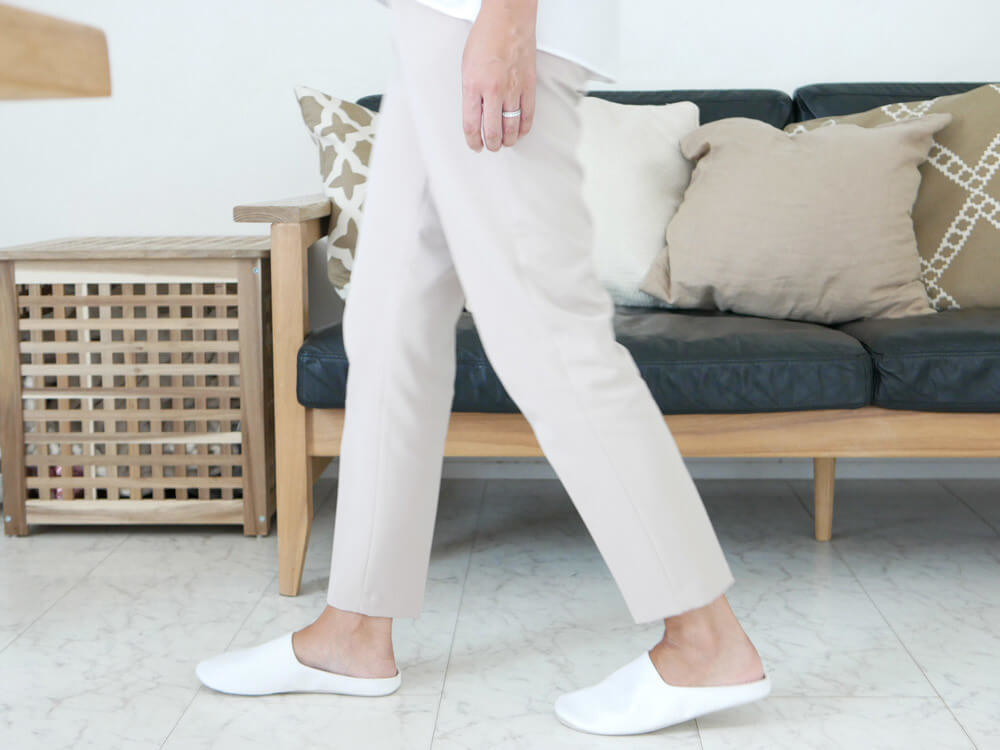 程よいバランスがON/OFF時にも履ける理由。リラックス感ありながらも、さりげなくエレガントなルームシューズ「【B2C】 プレーンステッチ」をご紹介します。
