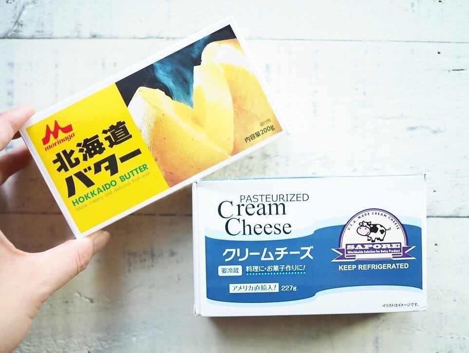 業務スーパーではクリームチーズの他にも、バターやチーズなどの乳製品がいつでもお買い得に入手できるのが嬉しい♪