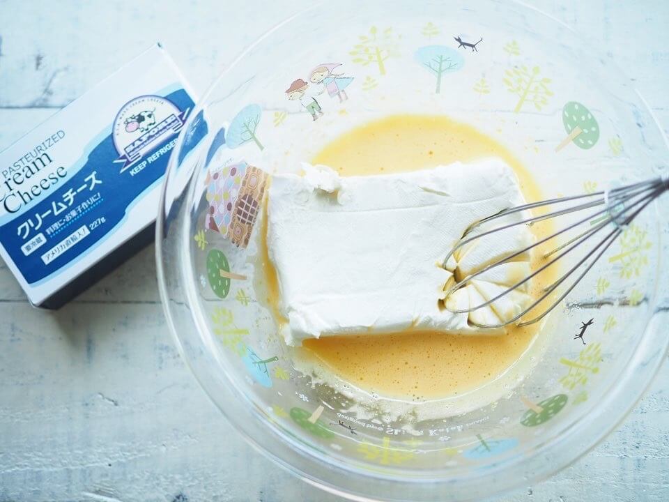 ③続いて、クリームチーズを加えてよく混ぜる