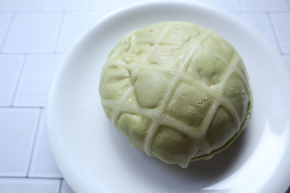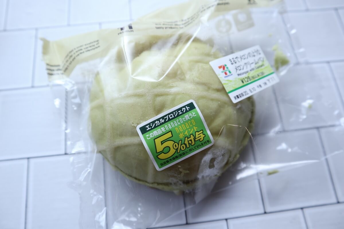 セブンプレミアムの「まるでメロンのようなメロンクリームパン」128円。