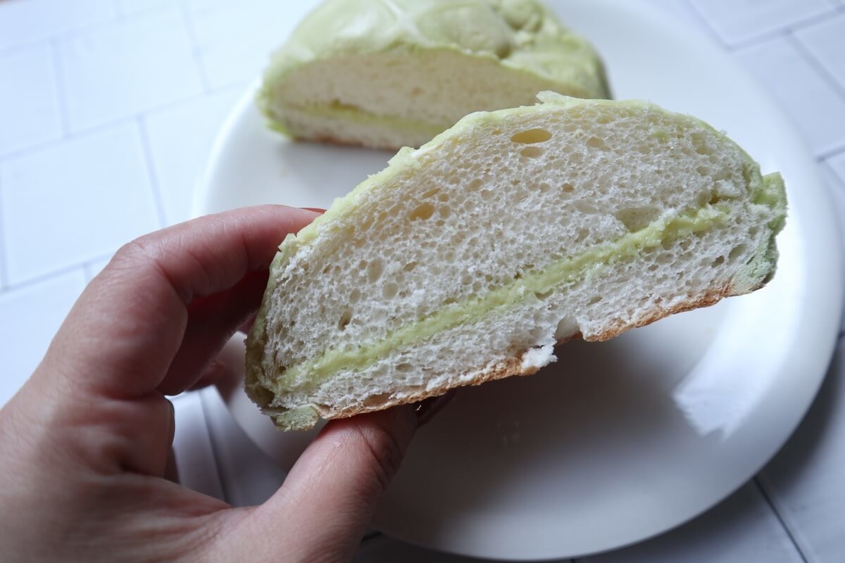 真ん中のグリーンのクリームは、メロン果汁入りというだけあって、本物のようなメロンの風味になめらかなクリーム!