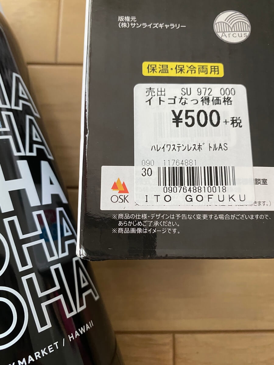 ハレイワの水筒って普通に3000〜3500円とかしますから、これは衝撃でした。
