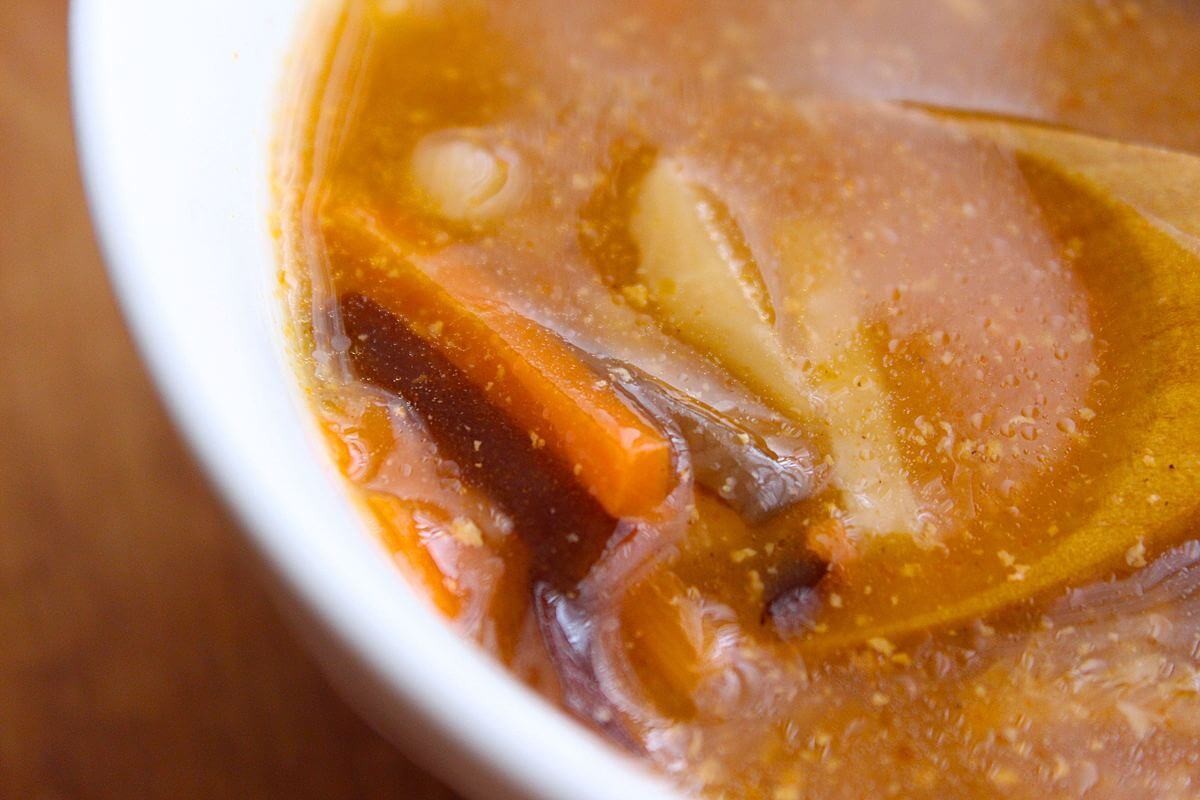 スープは、マイルドな酸味と辛味の中に、ものすごい旨味があります! めちゃくちゃおいし〜い!
