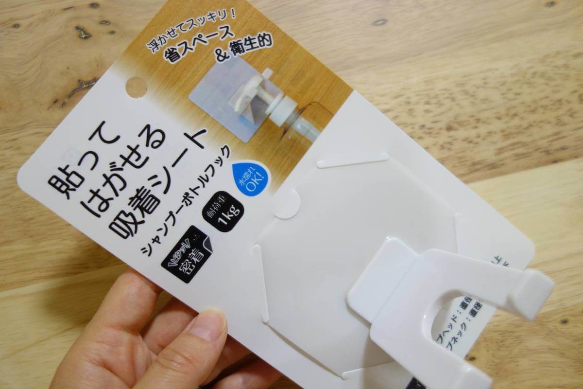 セリアの『貼ってはがせる吸着シートシャンプーボトルフック』