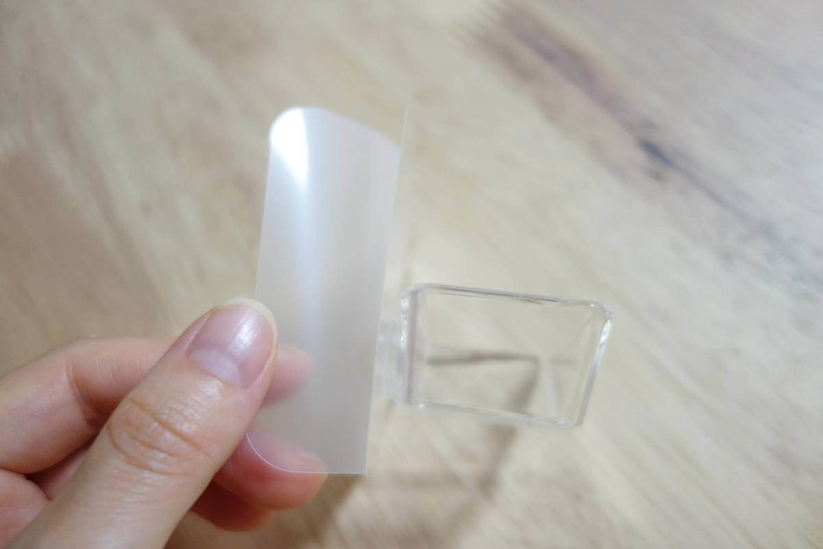 取り付け方は簡単。 取り付けたい場所のほこりや汚れを拭き取った後、裏側のフィルムを外して取り付けます。