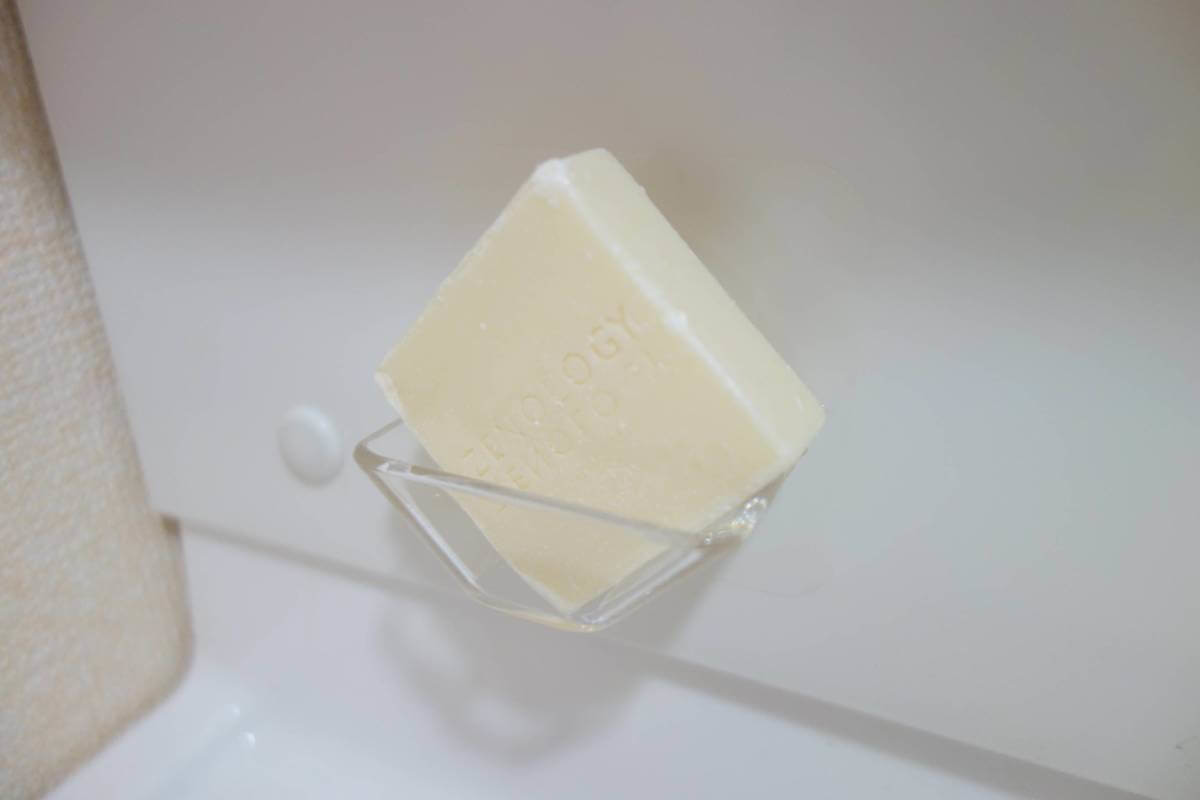 セリアの石けんトレーは水切れ対策もばっちりですね。 これなら石けんのヌメリを最小限に抑えられるので、石けんも最後までキレイに使いきれそうです。