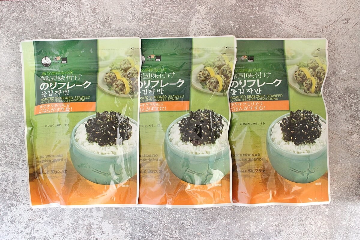 先日コストコで韓国のりフレークにとても良く似た新商品の試食があり、その試食品を韓国のりフレークを使って再現してみました。