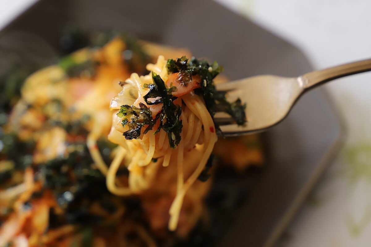 コストコの大人気商品、我が家でも鬼リピしている「宗家キムチ」を使用して作ったパスタです。