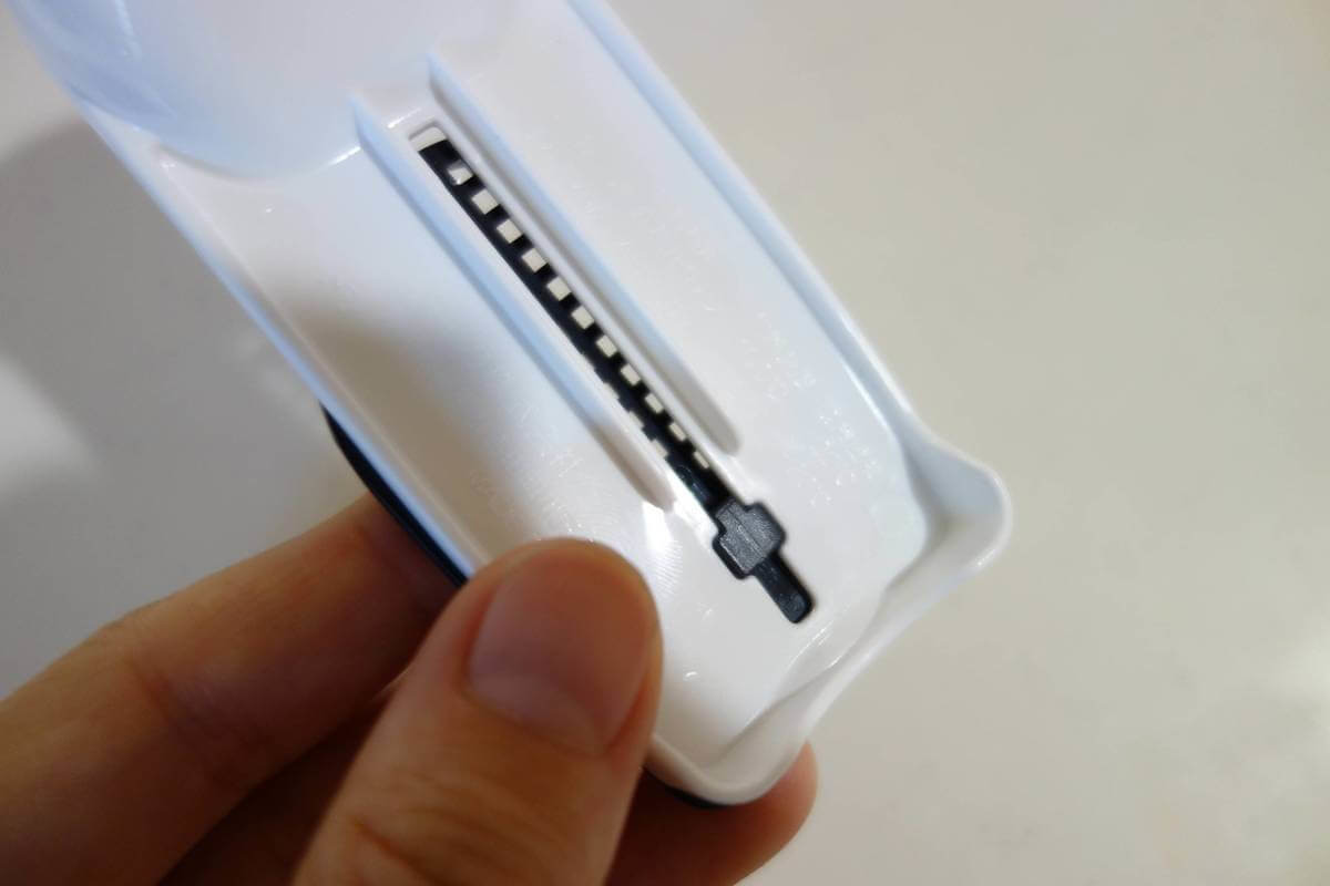 すりきり板は端までスライドして持ち上げると簡単に取り外せる作りになっています。