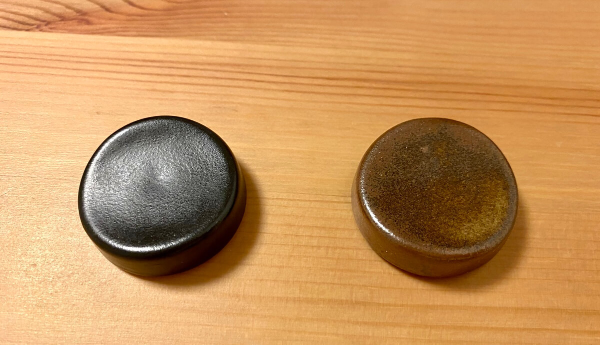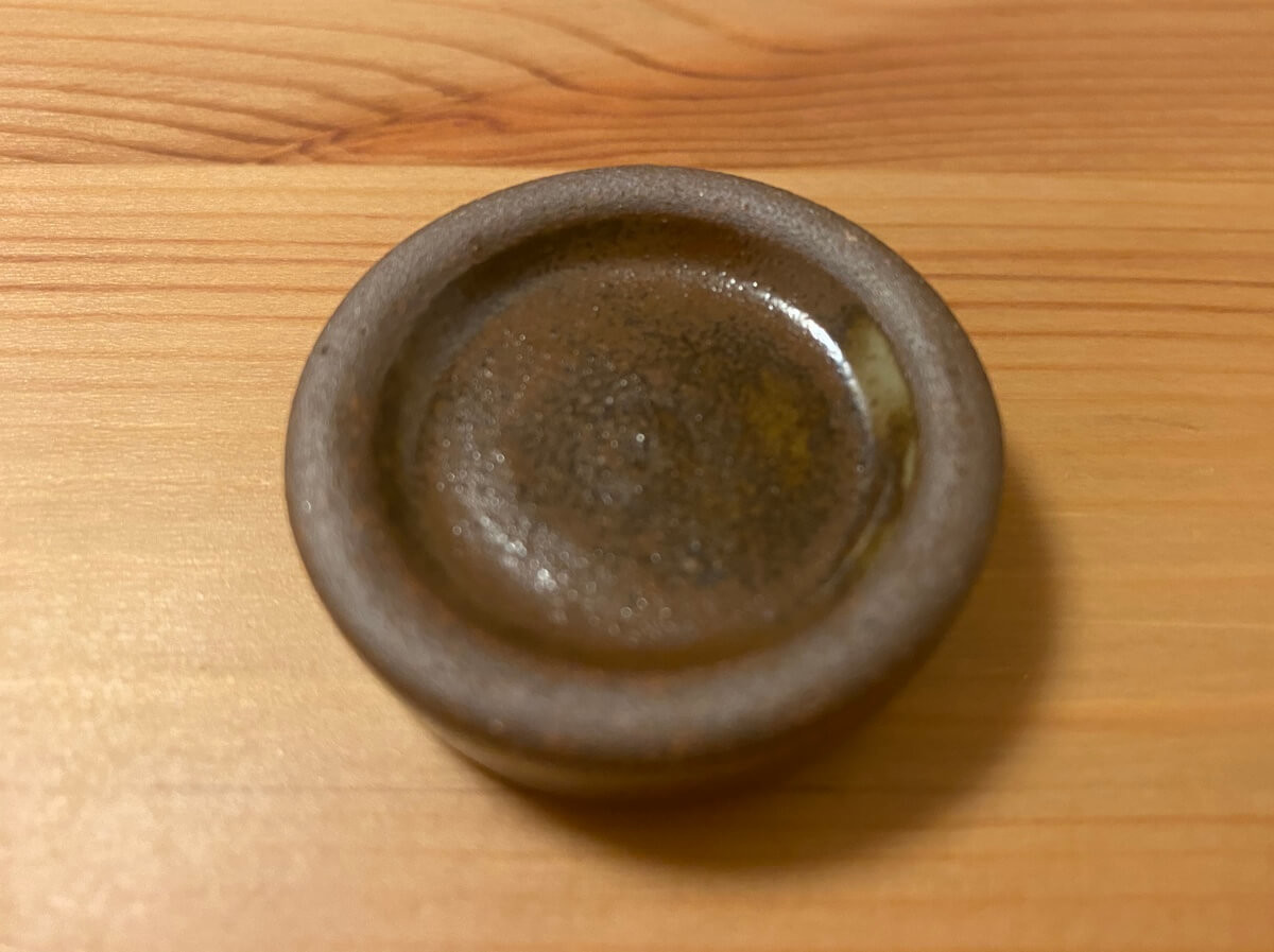 この箸置きは真ん中の部分が少し沈んでいるデザインです。先ほど紹介した、萬古の飯碗と一緒に使っても素敵ですね。