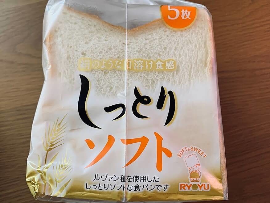 こちらもリョーユーから販売されている「しっとりソフト」食パンです。お値段は、私が購入したスーパーでは135円(税込)でした。