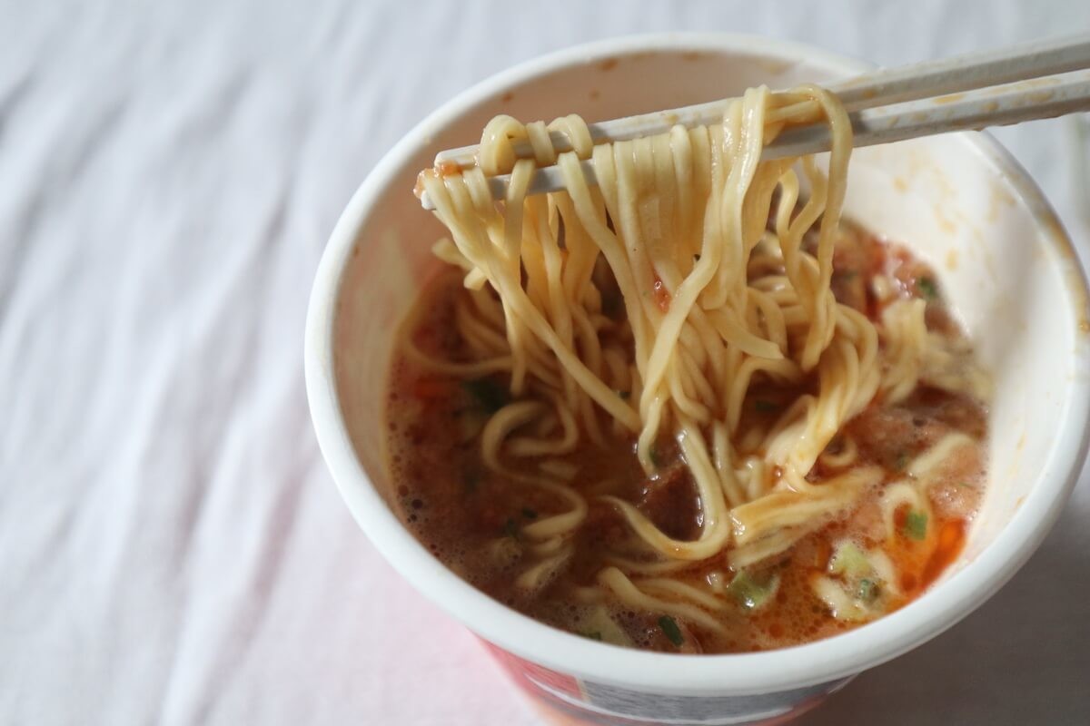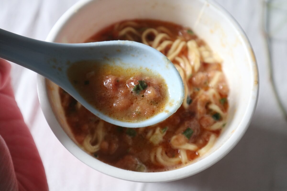 セブンイレブンはカップラーメンとは思えないちゅるんとしたのど越しのいい麺なのですが、二つはいわゆるカップラーメンの麺だよねという感じで感動がうすくなってしまいます。