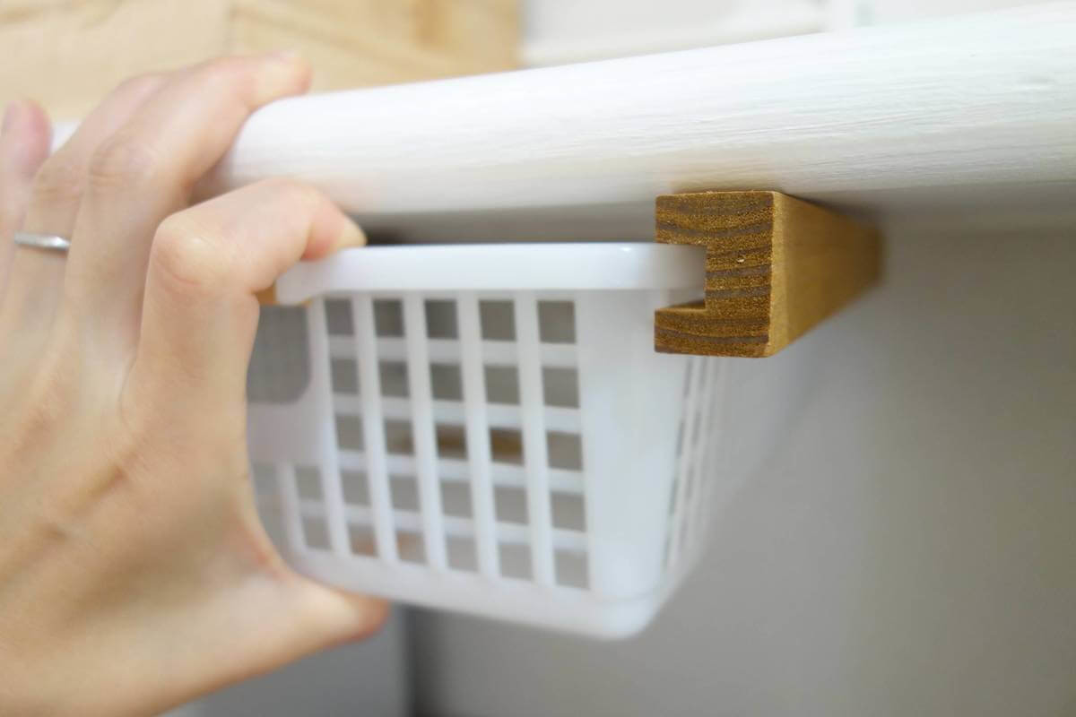 また、引出しになるラックはインテリアウォールバーの溝に引っかかるよう、縁があるものを選んでくださいね。