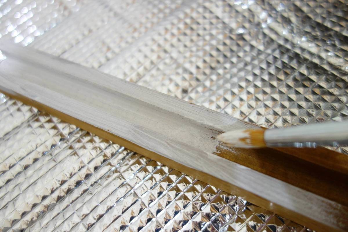 取り付け位置に印を付けたら、アクリル絵の具でインテリアウォールバーをペイントします。