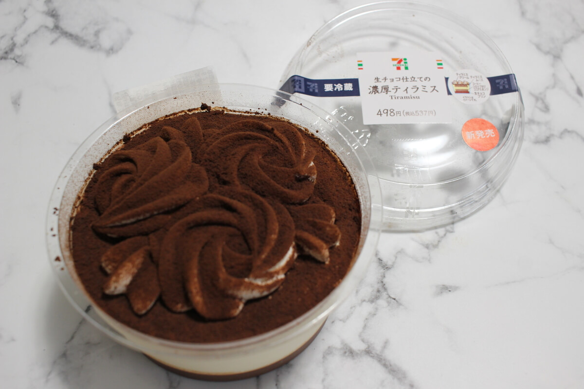セブンイレブンで買える「生チョコ仕立ての濃厚ティラミス」をご紹介しました。