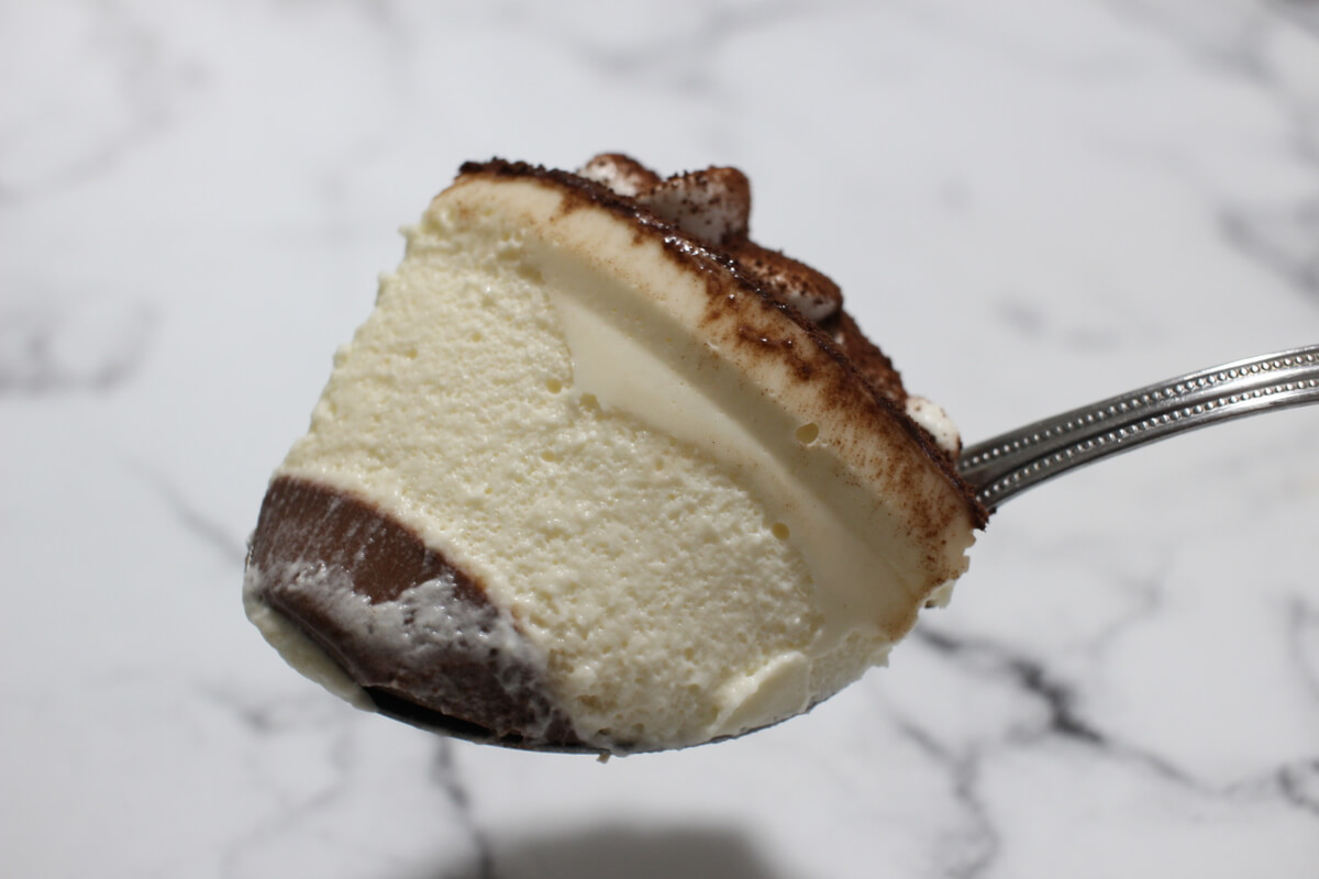 はじめはマスカルポーネの主張が強く、食べ進めるとコーヒーシロップがたっぷり染み込んだスポンジゾーンに突入。