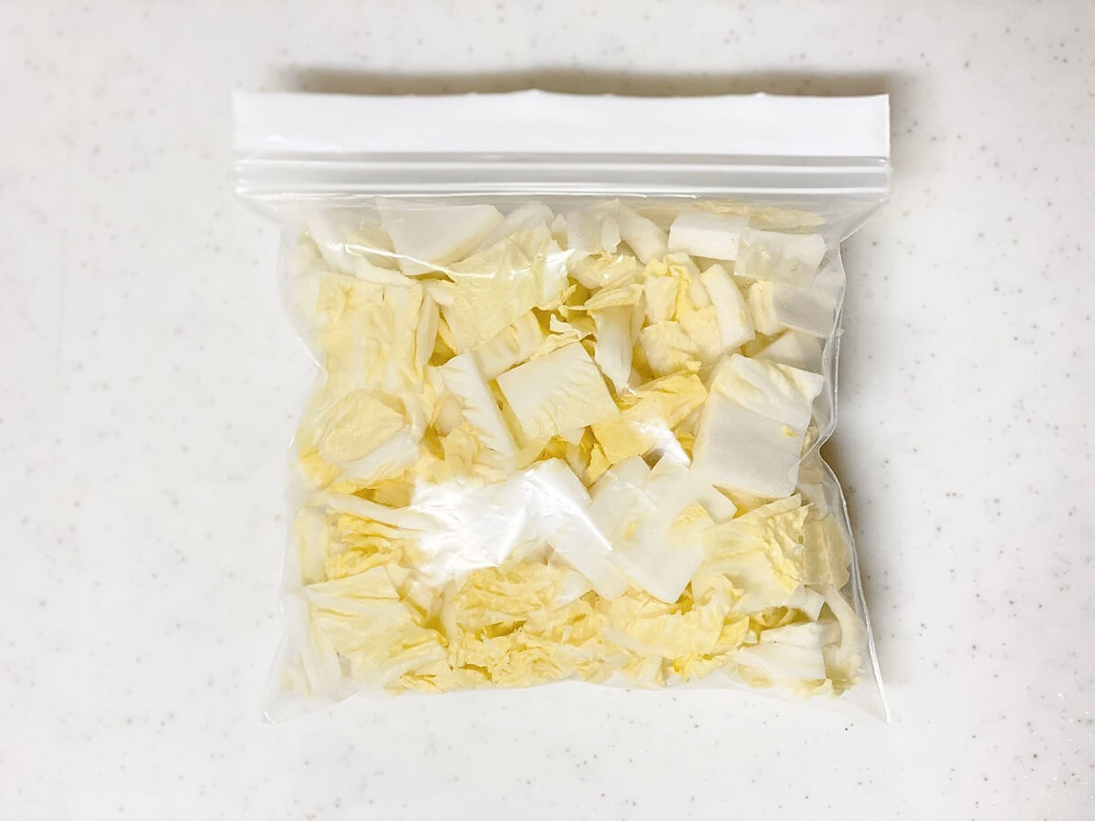 冷凍する際には、使いやすい形にカットしておくのがオススメです。この一手間を加えることで、調理する際に包丁もまな板も使わずに済むので、かなりの時短になりますよ♪