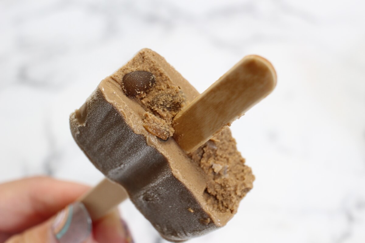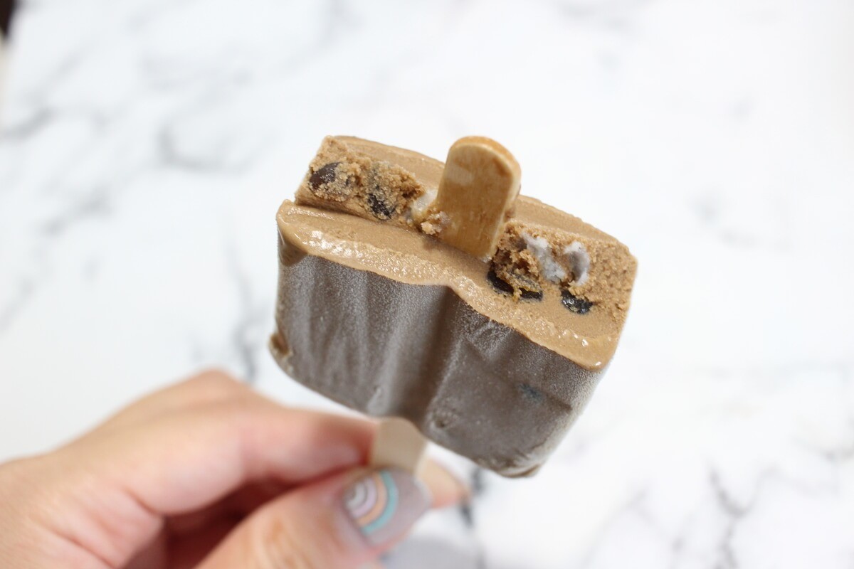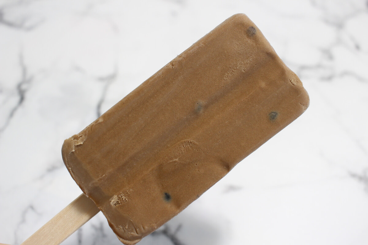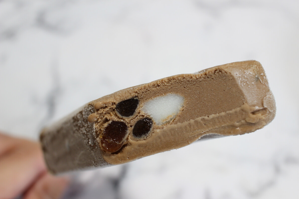 ロイヤルミルクティー味のアイスに黒蜜わらびもちとミルクソースが包まれたアイスバーです。