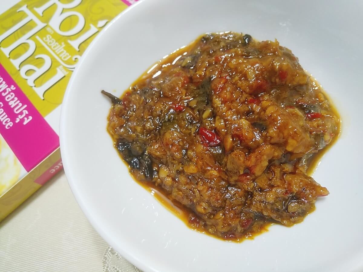 ペーストには細かく刻まれたホーリーバジルやにんにく、赤唐辛子など入っています。うーん、辛そう!