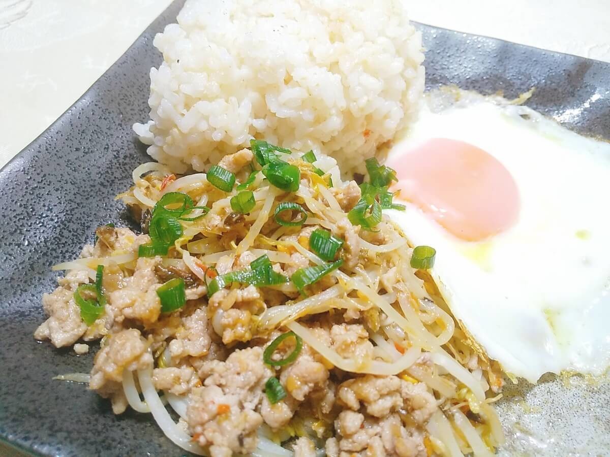 ④お好みで目玉焼きを作り、盛り付けたら完成