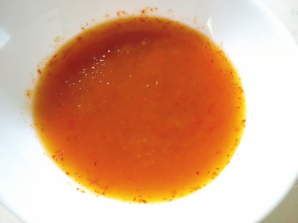 唐辛子とナンプラーが効いた、いかにも辛そうな赤色のつけだれ。 つけだれを添えると味がガラッと変わり、一気にタイっぽい雰囲気が押し寄せます。