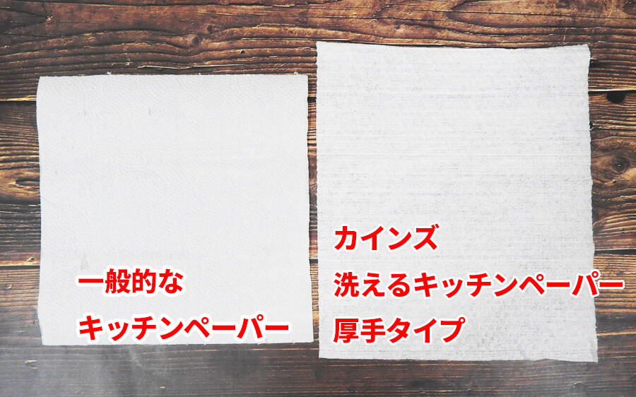 カインズ「洗えるキッチンペーパー厚手タイプ」は、不織布ペーパー。一般的なキッチンペーパーとは違って水に濡れてもくしゃくしゃになることはありません。