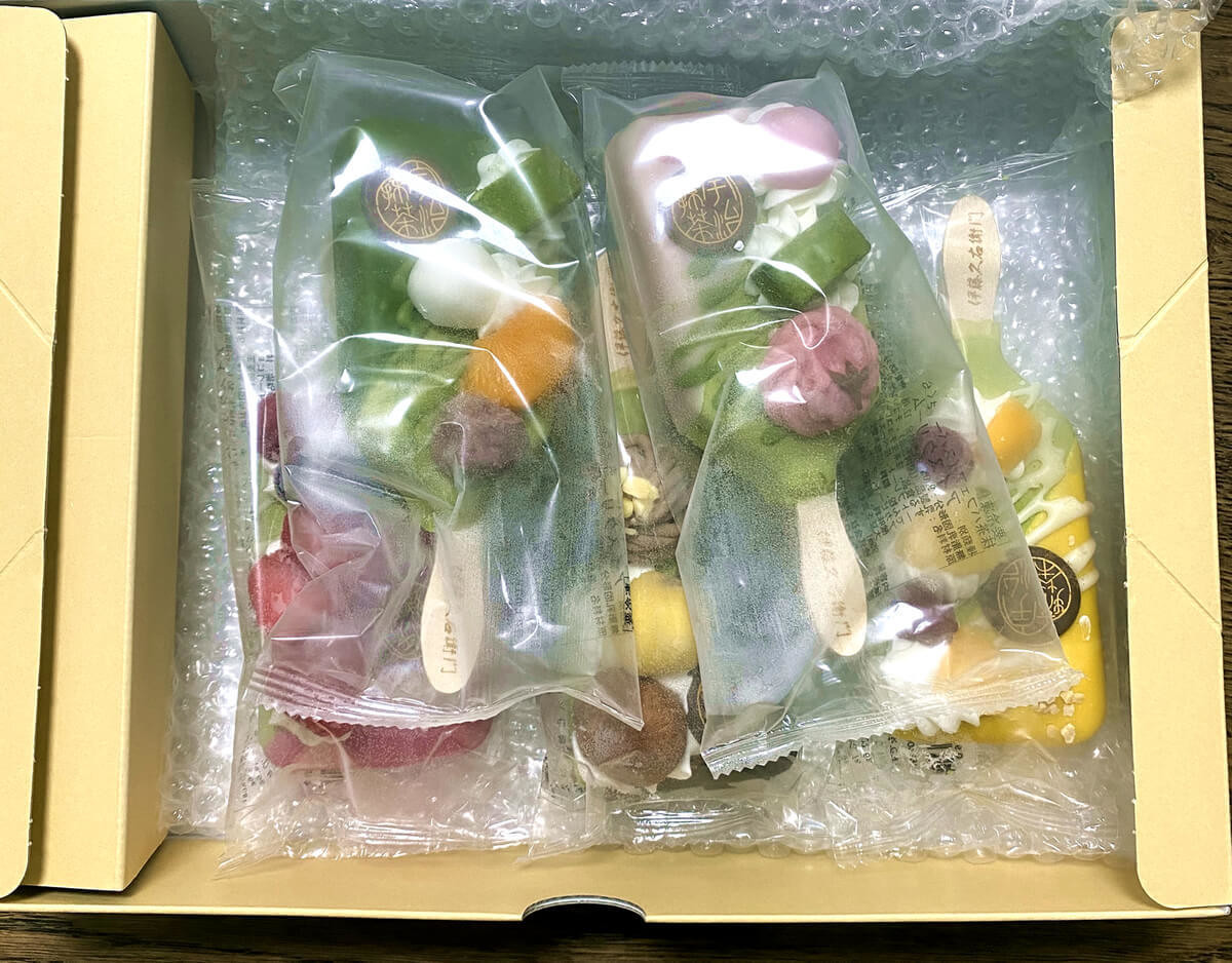 冷凍庫から取り出したばかりだと、表面にトッピングされた、大福やクリーム、フルーツがまだ硬く、味も感じにくいため本来の美味しさを味わえません。