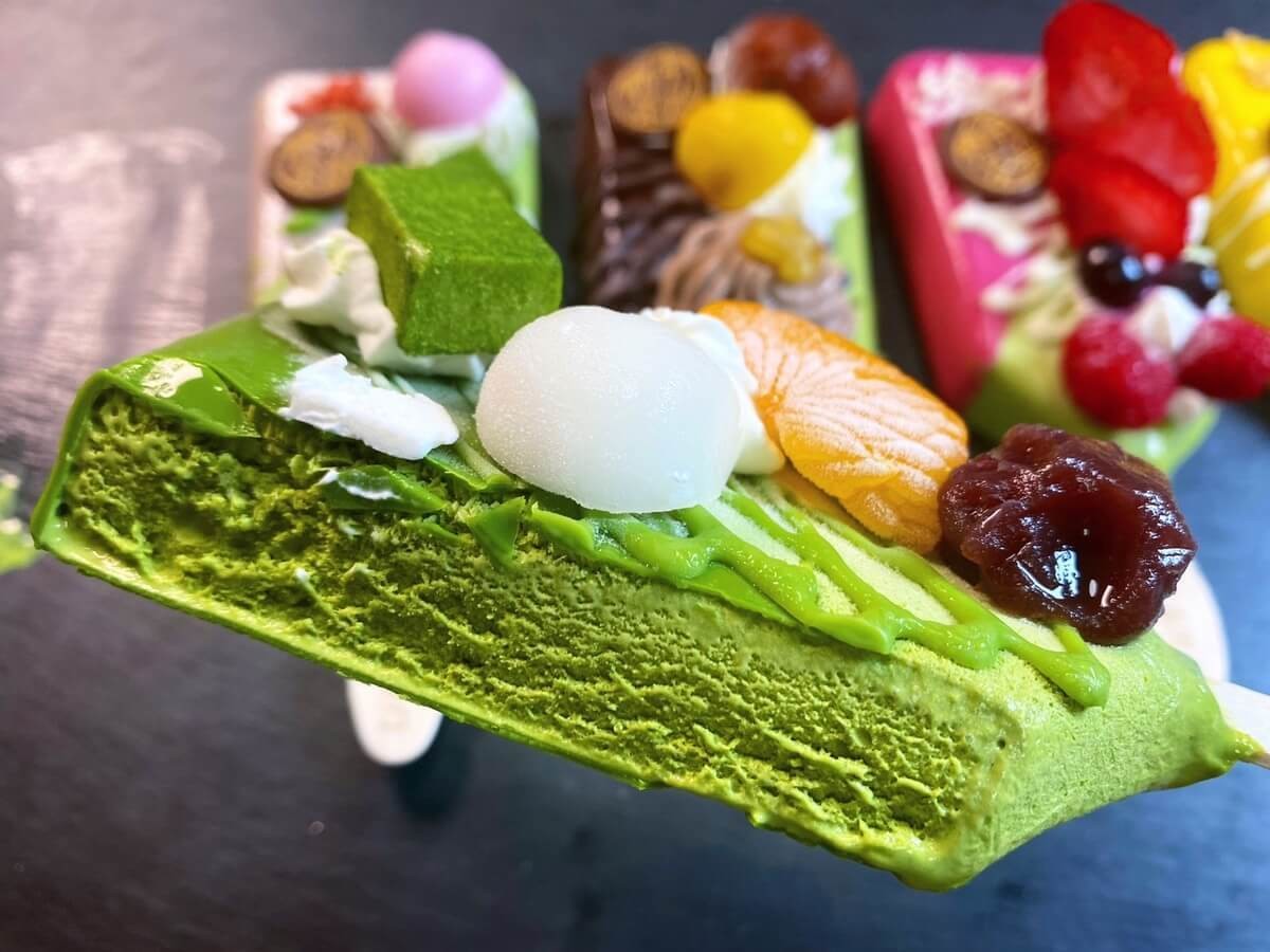 「もんぶらん」は他のフレーバーと印象がガラッと違い、綺麗な黄色をした栗の甘露煮、渋皮栗、マロンクリームがのっています。さっぱりというよりも、少しもったりとした甘さと抹茶のハーモニーを楽しめます。