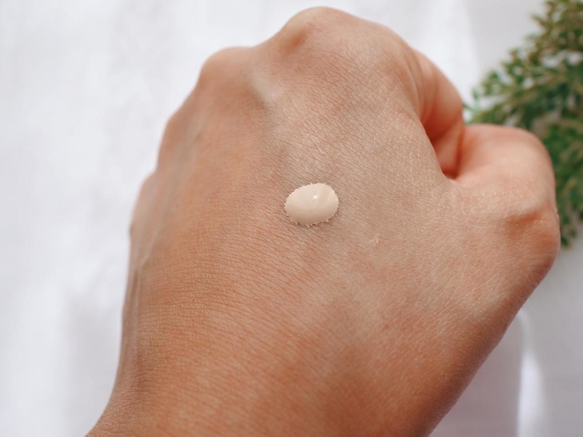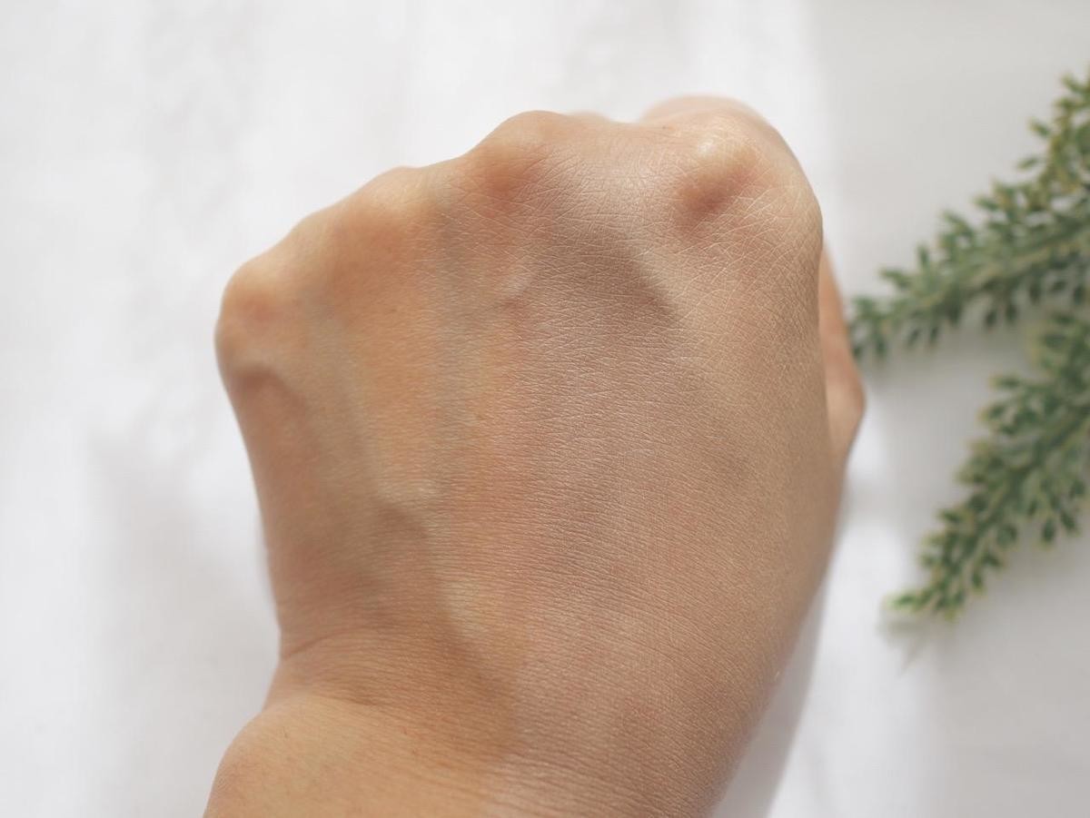 少しプッシュした量ですが、試し塗りでも多いくらいでした。肌にのせる際は1円玉サイズのワンプッシュ程の量でOKです。