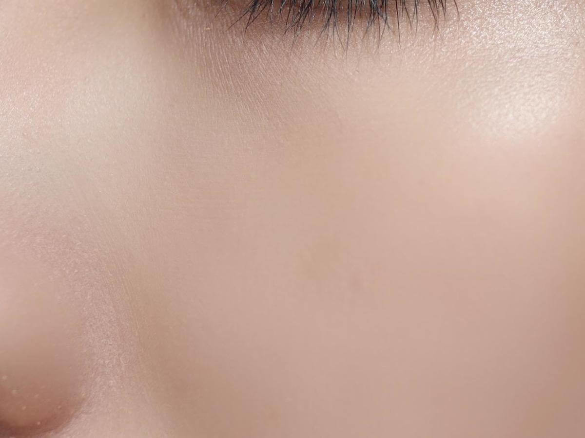 「ダブルラスティングセラムファンデーション」で仕上げた肌がこちら。コンシーラーは使用していない状態です。