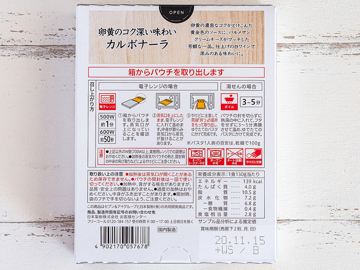 カルボナーラ好きにはたまらないパッケージではないでしょうか。