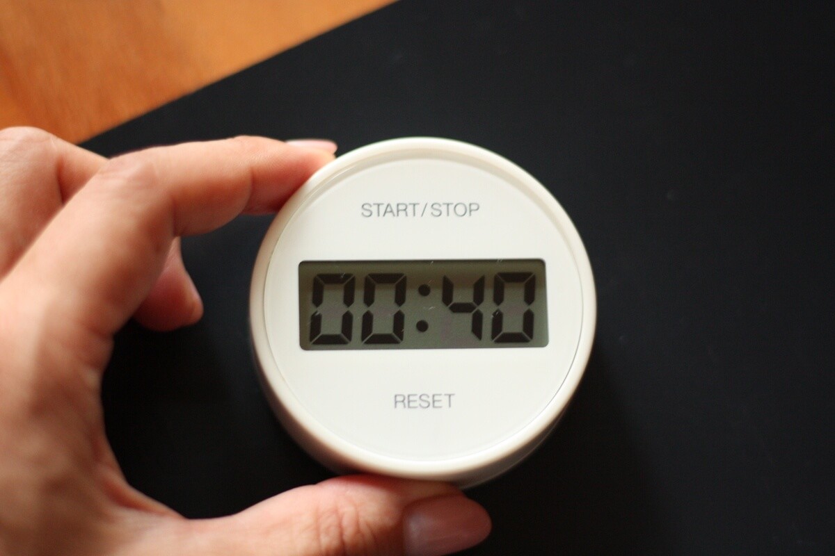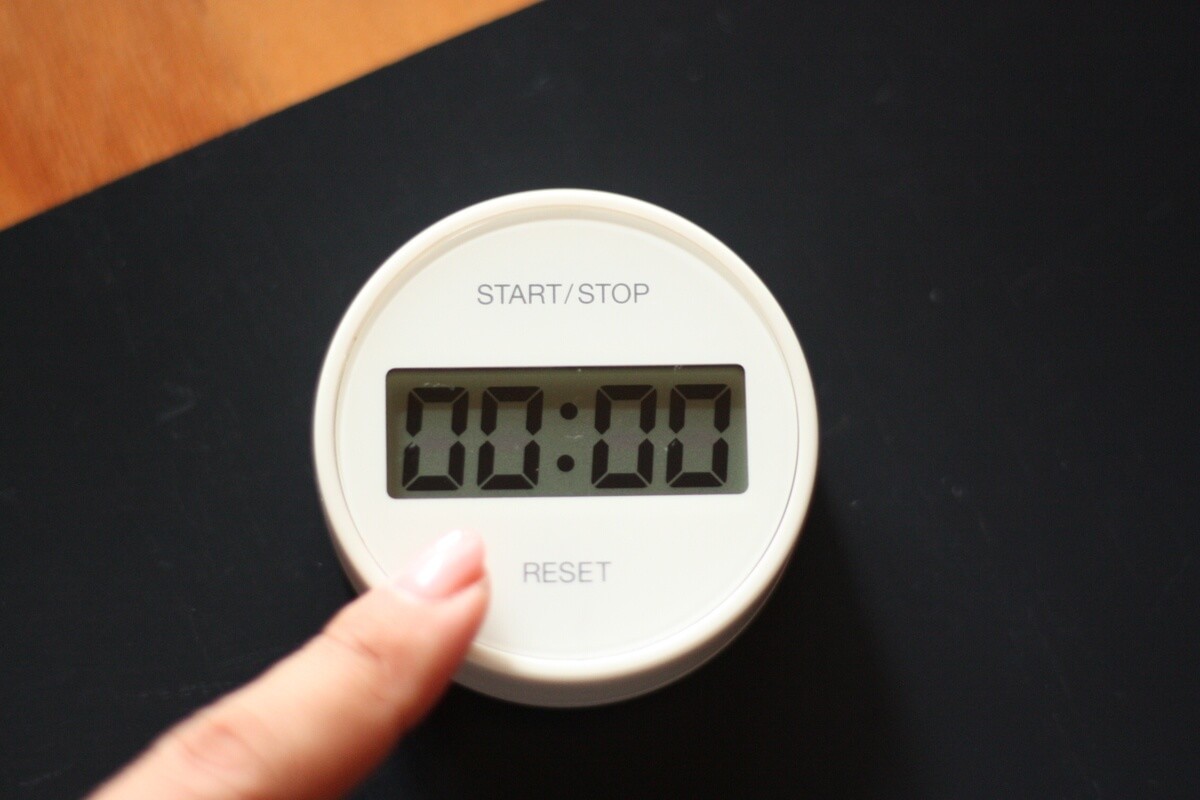 スマホにもタイマー機能はありますが、あえて「キッチンタイマー」をセットすることで、やるぞ、という気持ちが湧いてきます。
