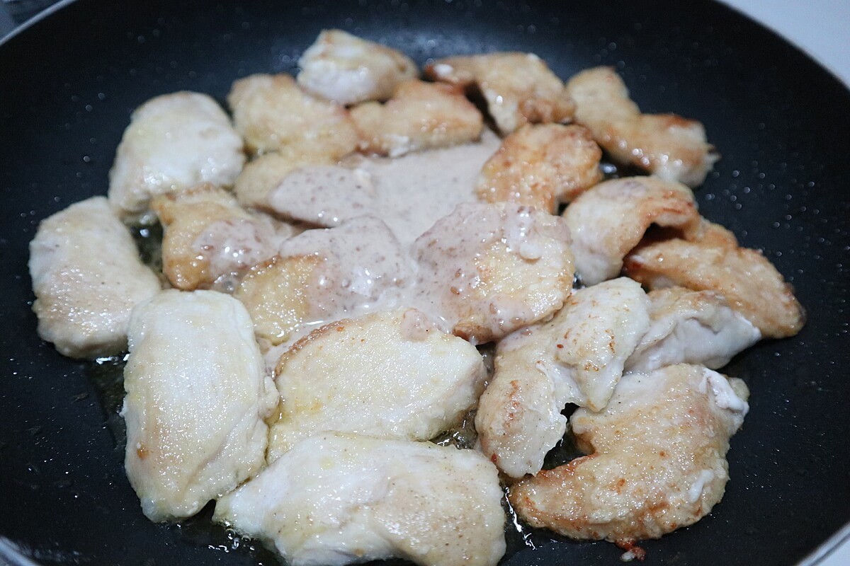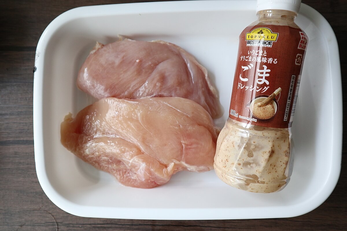 鶏胸肉をフライパンで10分焼いたら、こっくりとした「ごまドレッシング」を絡ませるだけ!簡単に「ご飯が進む味」に仕上がります。