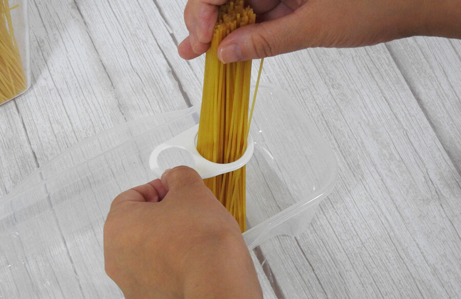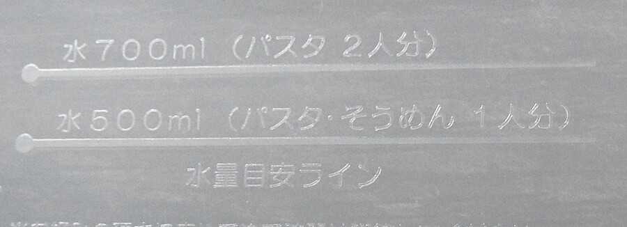 ※パスタメジャーは本体のふた部分にくっついています水を入れた本体にパスタと塩少々を入れる