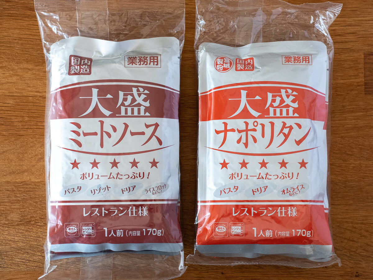 今回は業務スーパーのレトルトパスタソース「大盛ナポリタン」と「大盛ミートソース」をご紹介しました。