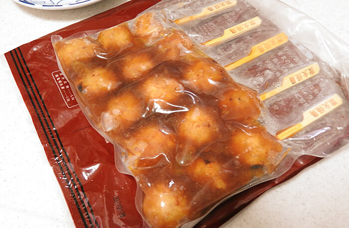 業務スーパーの「軟骨入りつくね串」は5本とも同じ真空パックに入っています。冷凍された状態でも1本1本取り出せますので、必要な分だけ取り出せますよ。