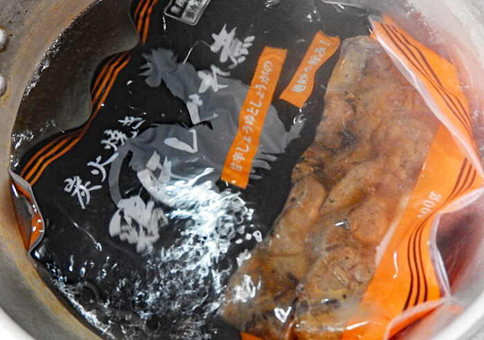 業務スーパーの「炭火焼き鶏肝しぐれ煮」は、湯せんで5分ほど加熱するだけ。とても簡単に調理ができますね。