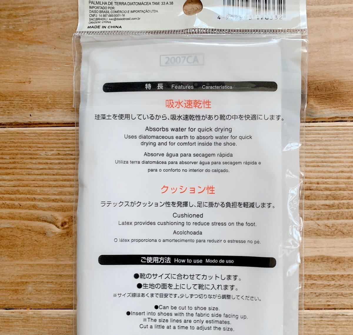 今度の珪藻土は靴の中のインソールとなってダイソーで発見!