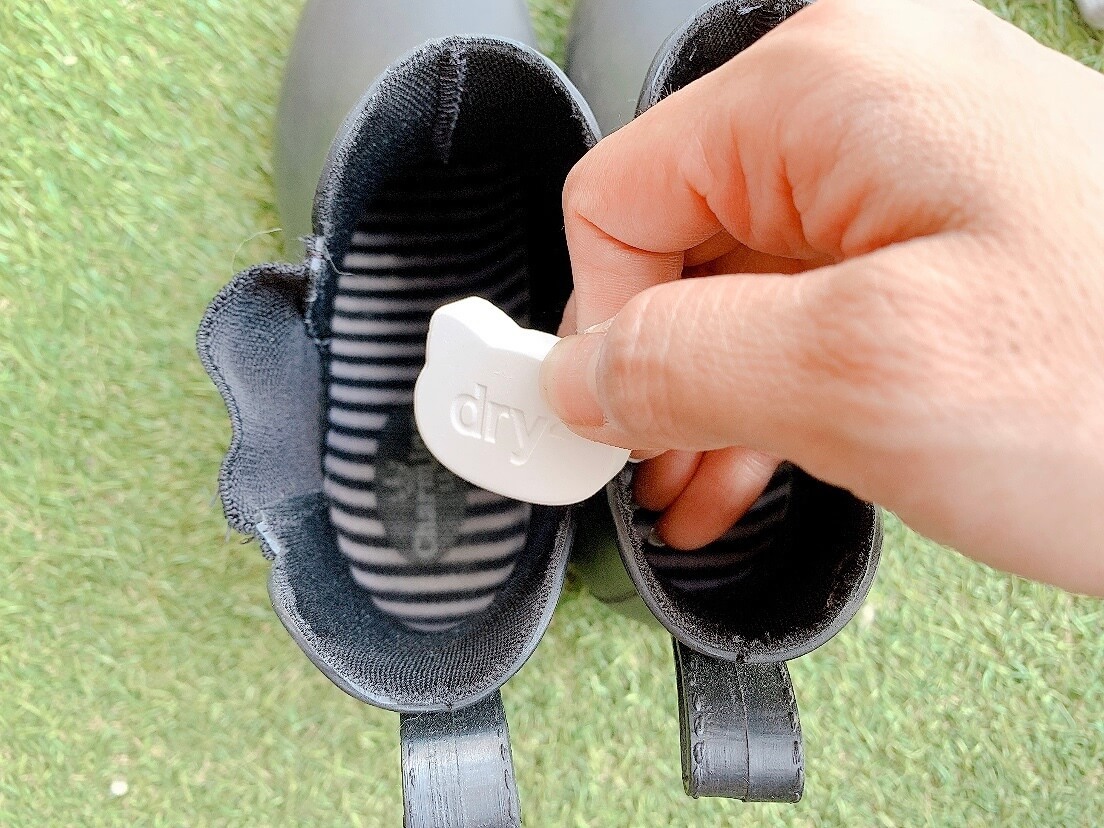 珪藻土シューズドライでジメっとした爪先などの水分を吸収してもらいましょう。