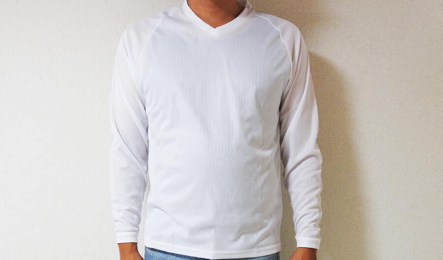 とっても軽い・ワークマン「BSライトストレッチV衿長袖」795円(税込)