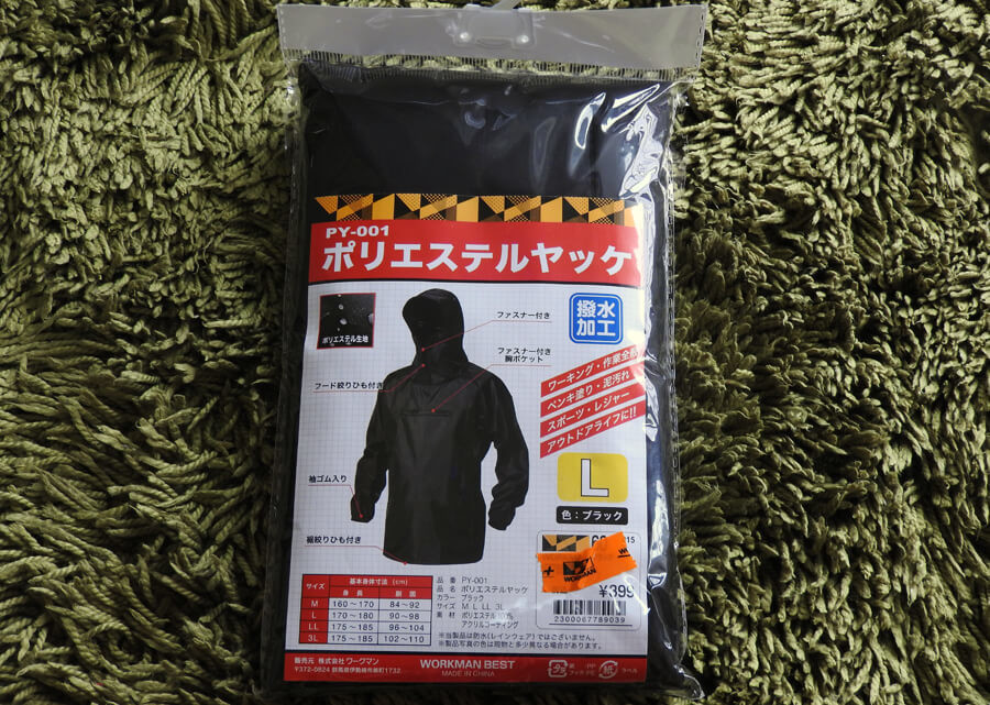 何かと外でDIYをする夫が欲しがったワークマン「ポリエステルヤッケ」399円(税込)。おしゃれさはありませんが、実用性がありそうなので購入してみました。