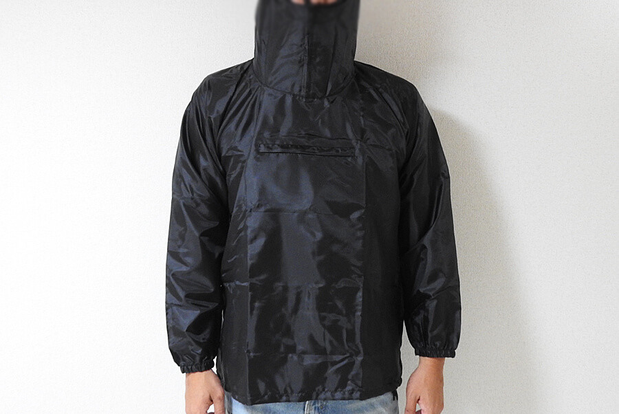 フードのひもをしぼると鼻の下まで隠れてしまいますので、ちょっと怪しい人物に見えます。雨や風、泥除けになりますので、DIYもそうですがスポーツ時にもよさそうですし、台風の前などで家の補修をしたい時にも活躍しそうです。
