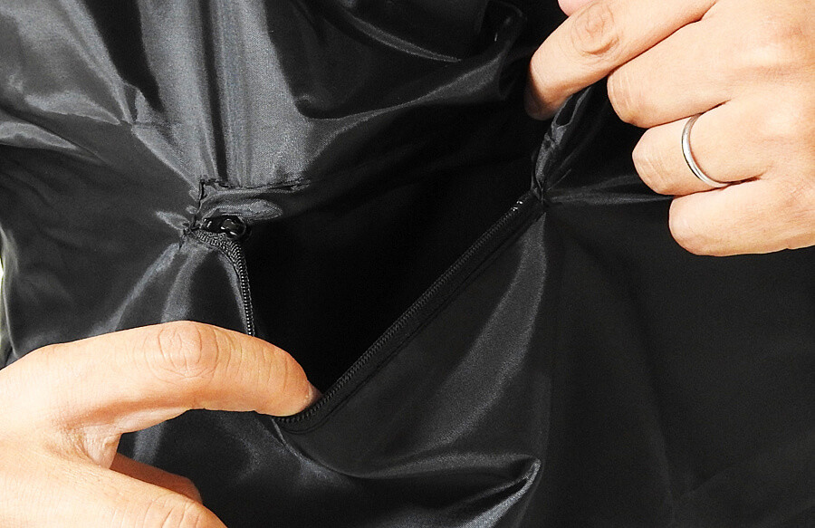 ジャケットには収納ポーチもついていました。着用しない時には、収納ポーチにジャケットを入れておけばかさばらなくていいですね。アウトドアに持ち運びたい人や、「クローゼットに洋服を掛ける余裕がない……!」なんて人には嬉しいポイントではないでしょうか。