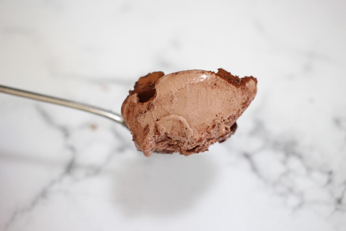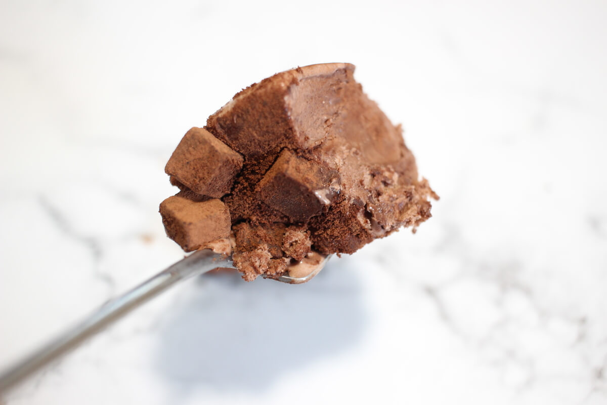 エクアドル産カカオ豆を100%使用したチョコアイスに、ベルギー産チョコレートと北海道産生クリームを使った生チョコアイスを合わせているそう。