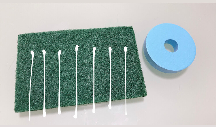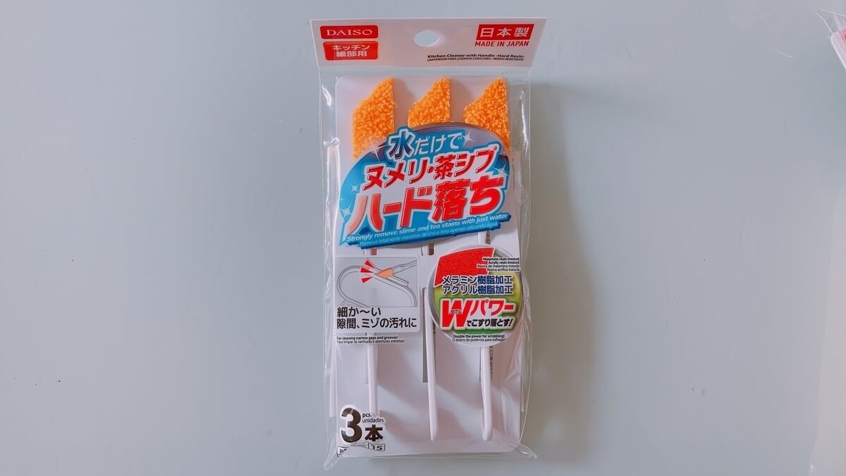 100均ダイソーのキッチンコーナーでゲットできる3本入りのスポンジ。茶渋とりに最適なのですが、苔もぐんぐん取ってくれるんです!